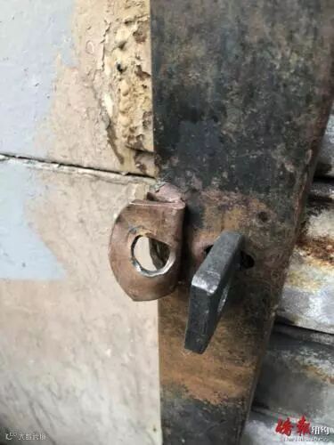 铁制的锁孔都被窃贼敲弯。(崔国萁摄)