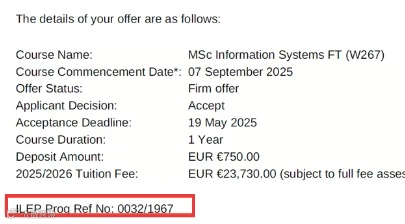 划重点:ILEP 号码是课程合法性的 "身份证",没它会直接导致申请被拒,拿到录取信后第一时间核对!