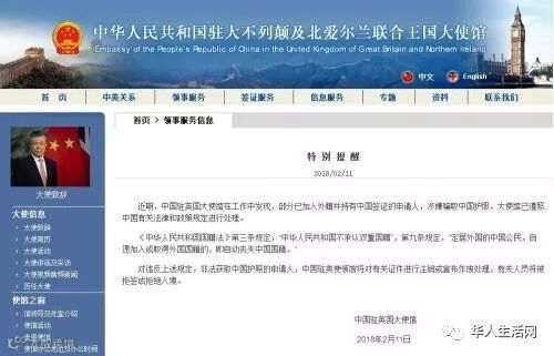 据中国驻英国大使馆网站消息,近期,中国驻英国使馆在工作中发现,部分已加入外籍并持有中国签证的申请人,涉嫌骗取中国护照。大使馆已遵照中国有关法律和政策规定进行处理。