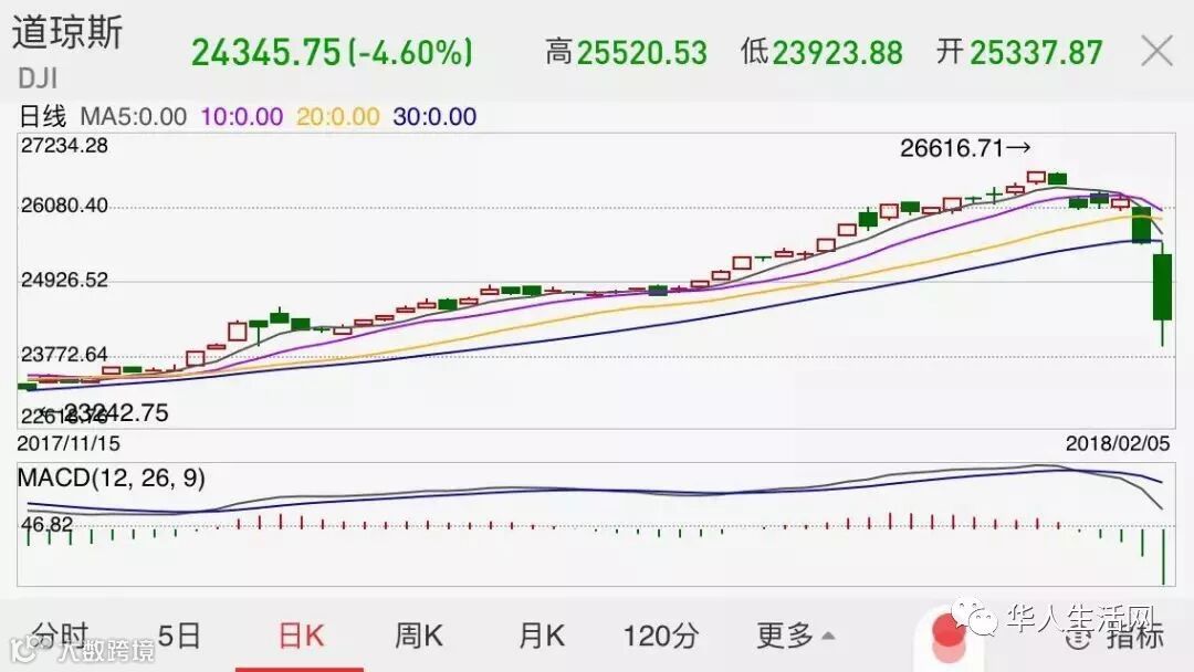 美股5日经历六年半以来最糟糕的一天,付出了1.25万亿美元的惨重代价。截至收市,道指跌1175.21点,或4.60%,报24345.75点;标普五百指数跌113.19点,或4.10%,报2648.94点;纳指跌273.42点,或3.78%,报6967.53点。新浪财经报道,标普五百指数已抹去今年全部涨幅并转跌,这是美国失去AAA债信评级以来的最大跌幅,超过中国人民币突然贬值之后、英国脱欧公投之后和美国选前情绪紧张阶段的跌幅。