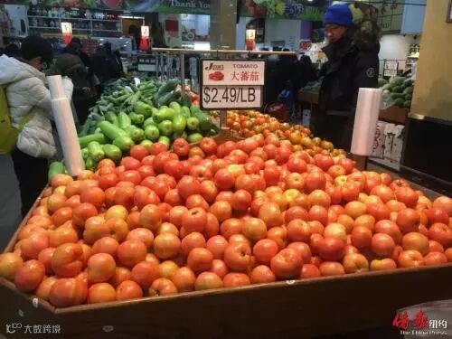 针对超市蔬果的价格,吴经理说,蔬菜类受低温影响较严重的有豆苗、番茄和葱等怕冻的蔬菜,大部分华裔所开的超市的蔬菜约70%是从墨西哥进货,通过近一个星期的卡车运输抵达各大超市。吴经理说,像番茄特别容易受冻,外皮一冻伤里面的果肉就很容易腐坏。番茄在进货途中受冻伤无法避免,因此,出现了正常时间的番茄大概每磅$1左右,现在却要每磅$2.5,更贵时要每磅$3.99的现象。
