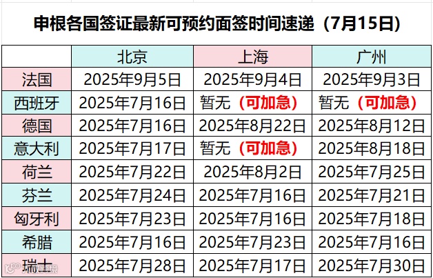 还在为申根签证预约发愁吗?当下几个领馆的预约号基本都排到7月底、8月份和9月份了,正常预约的话,时间实在太紧张,稍有不慎就可能耽误行程。别担心!我司可提供渠道加急面签服务,没有风险,成功率高!