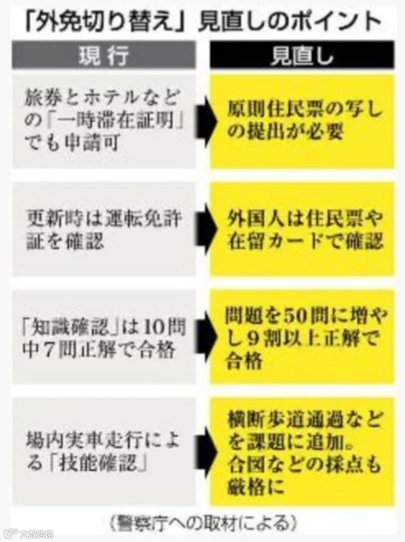新规实施后,旅游签、商务签持有者将彻底失去换证资格,且考试难度飙升五倍:笔试从 10 道题增至 50 道,正确率需达 90%;路考新增铁路口左右观察、人行道减速等硬性要求,转向灯打晚三秒即判定不合格。更值得警惕的是,日本政府已开始复查过往通过短期签证换证的案例,若发现材料造假,驾照可能被注销并追究法律责任。