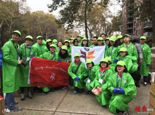 美东飞狐跑群和岚山跑群部分义工合影。(侨报记者摄)