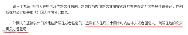 外国人在旅馆以外的其他住所居住或者住宿的,应当在入住后24小时内由本人或者留宿人向居住地的公安机关办理登记。