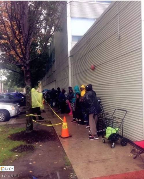很多人都是推着购物车来,因为可以分发的食物真的(大写的)非常多!他们的购物车都是照片那样的,突然想起刚来美国的时候看到这种购物车觉得很好,因为住学校里面不需要车,每次去超市买都系都拎得很重,就很想要这样的购物车,放东西又放得多。