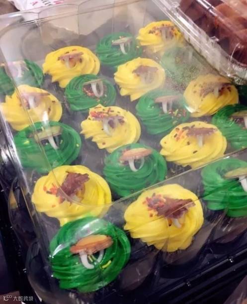 最后的也是大家很喜欢的就是甜点了,除了一些普通的甜甜圈以外,还有各种苹果派,南瓜派,肉桂派,巧克力蛋糕,当然最受欢迎的就是那些装饰的很漂亮的杯子蛋糕和生日蛋糕,每人都去问要那些漂亮的蛋糕,但是那些是给最近生日的人的,如果他们show ID 证明自己最近生日就可以拿那些漂亮蛋糕。