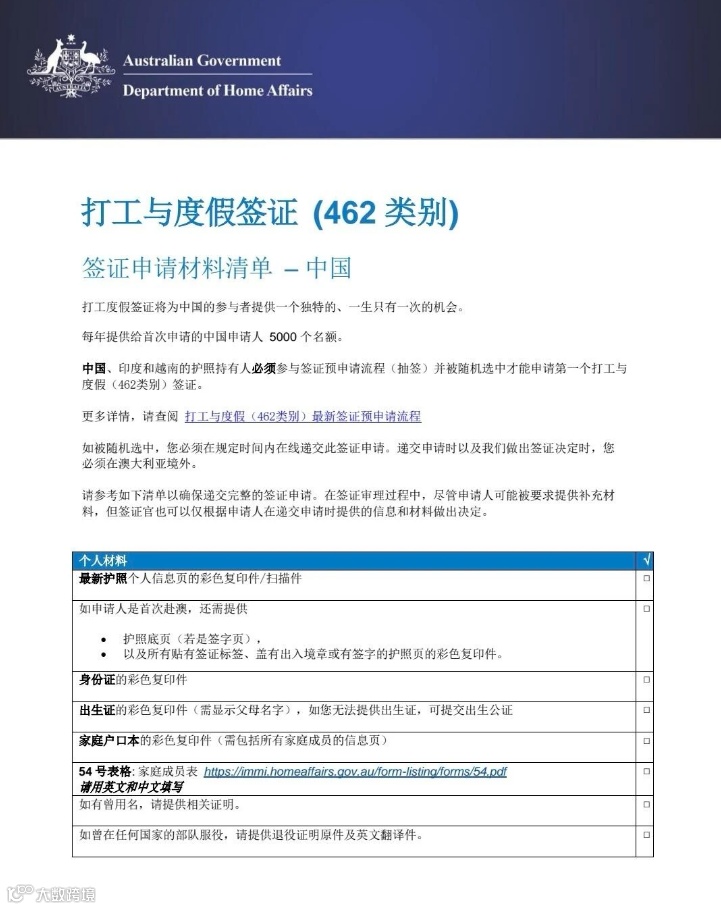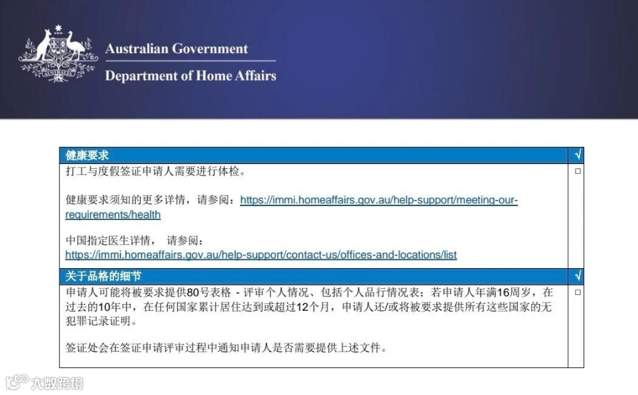 适用场景:在澳洲工作。