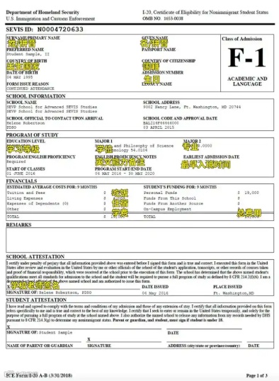 I-20表格(Certificate of Eligibility for Nonimmigrant Student Status)由美国学校通过SEVIS系统生成,是国际学生申请F-1签证、入境美国及维持合法身份的核心文件。I-20需包含以下信息:
