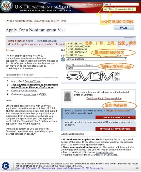 填写DS-160表网址:https://ceac.state.gov/GENNIV/default.aspx