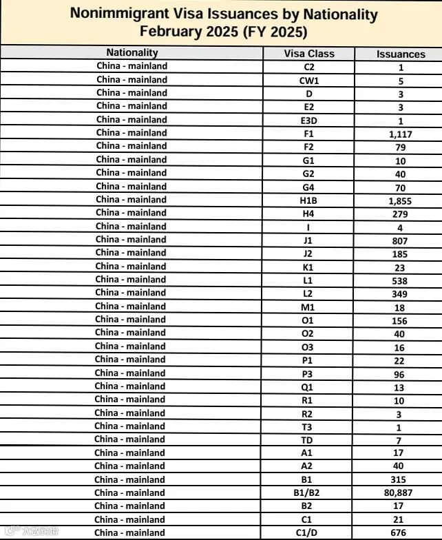 非移民签证中,B1/B2(旅游/商务签)以80,887个稳居第一,赴美短期活动需求旺盛,侧面反映中美民间交流韧性: