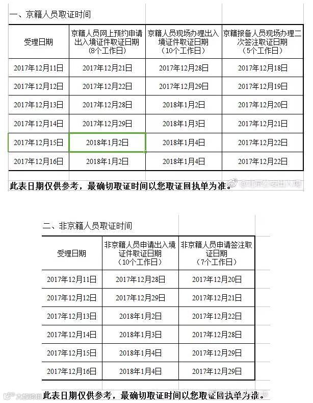 受出入境管理信息系统更新影响,12月24日0时至12月27日24时,暂停受理一切服务,取证日期顺延,具体参考以下表格。