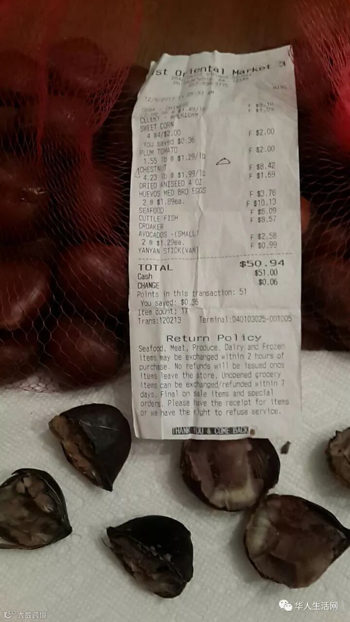 二. 华人在华人超市买到的栗子都是坏了发黑的,吃着发臭。
