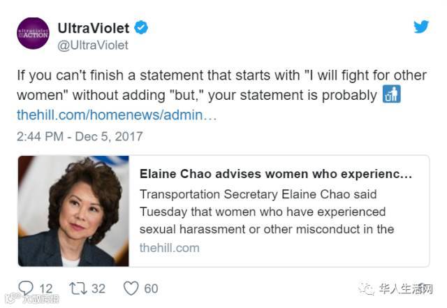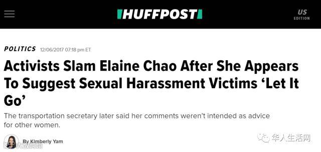 美国交通部部长赵小兰在一次峰会上发言,似乎是暗示指控性侵的女性应该放下执着。美媒称,她的言论立即受到社交网络和女权专家的谴责。