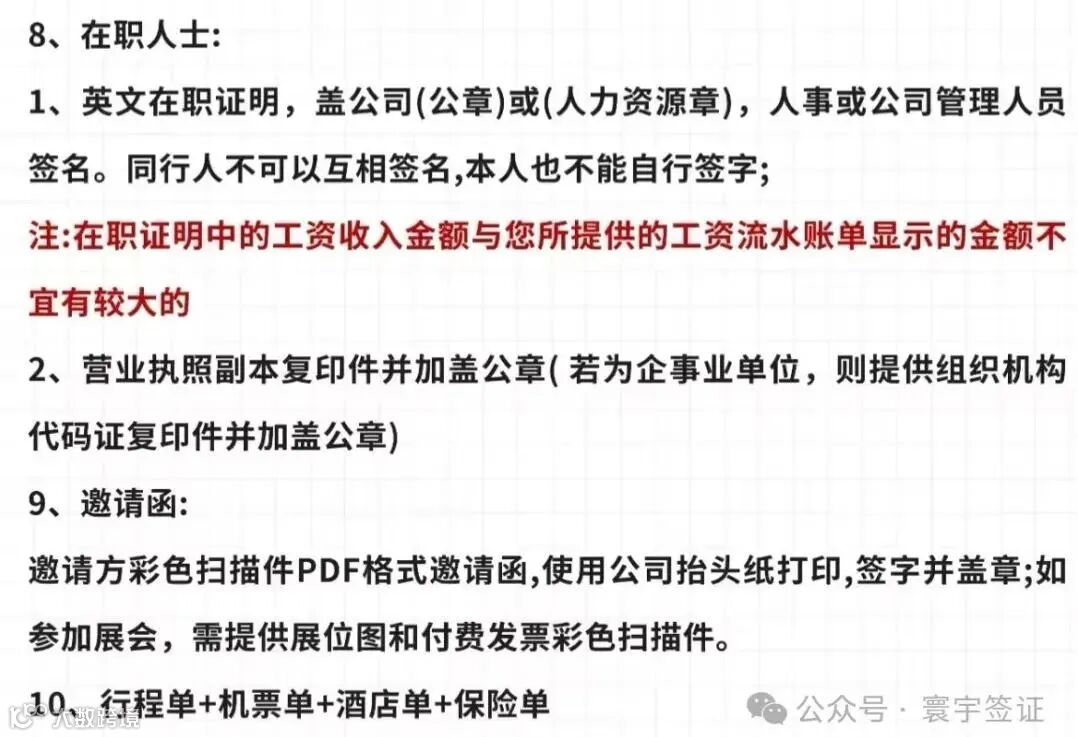 包含旅行目的、雇主全称和地址、电话和传真号码、申请人的职务、收入和起聘日期等信息。