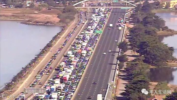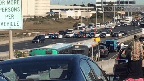 不过该汽车撞倒路障停下后,疑犯仍未投降,双方在公路上展开对峙(Standoff)。警方立即封锁I-80号公路两边行车线,让该本来已属全加州最繁忙的公路路段,车龙绵延数十英尺,交通陷入瘫痪状态。