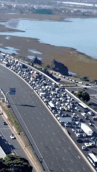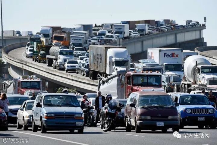 (图为交通堵塞中焦急等待的群众)