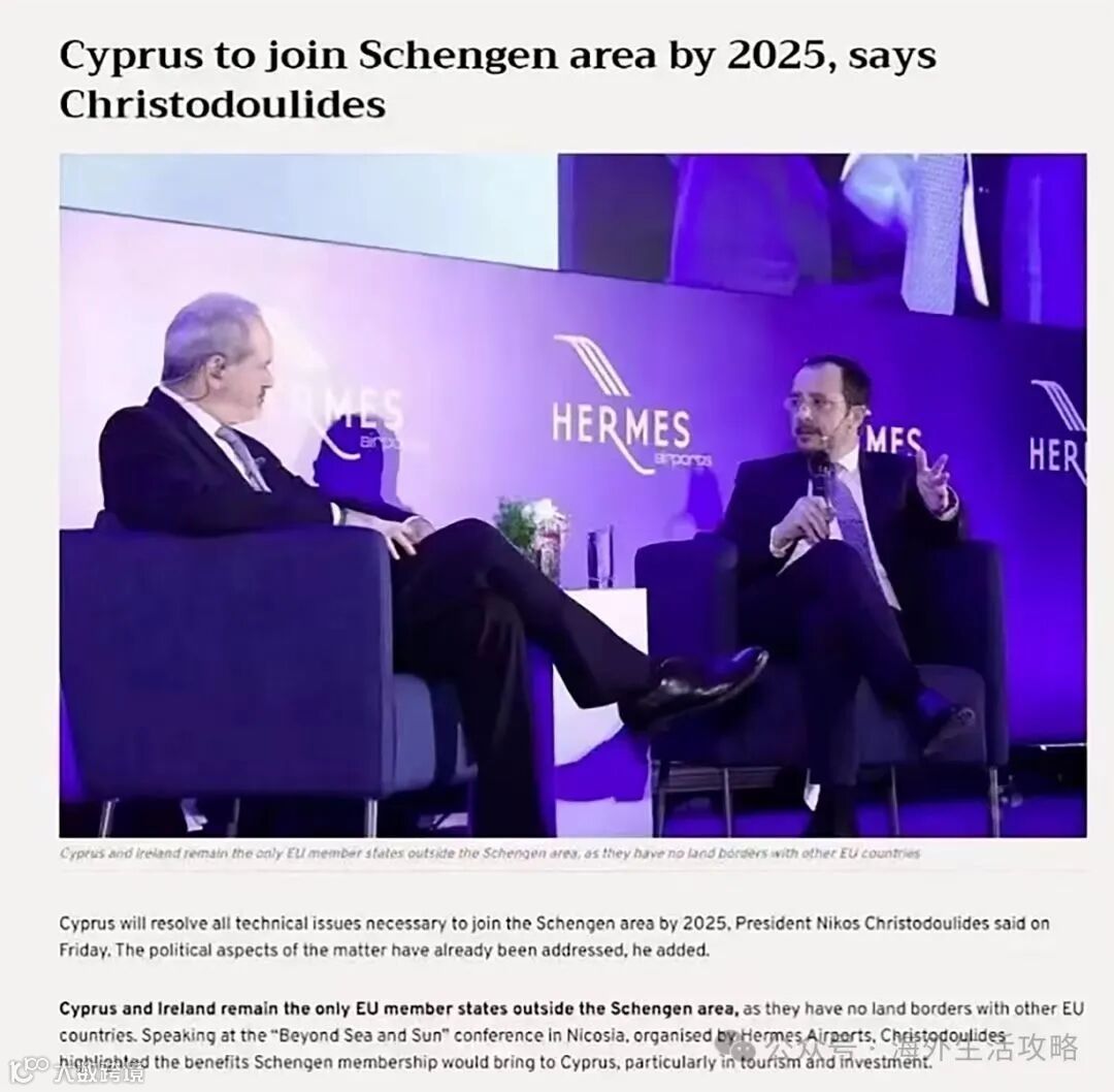 当下,塞浦路斯与爱尔兰是仅存于申根区之外的欧盟成员国,这主要归因于它们与其他欧盟国家不存在陆地接壤。然而,一旦成功加入申根区,对塞浦路斯而言,将是一次全方位的跃升,尤其在旅游与投资领域,所带来的机遇堪称巨大。在尼科西亚由Hermes Airports 盛大举办的 “超越海洋和阳光” 会议上,总统着重阐述了申根成员国身份将为塞浦路斯带来的无可估量的益处。他明确表示,眼下,外交部的专业团队正有条不紊地监督并敲定加入申根区所需的各项技术细节。申根区幅员辽阔,覆盖面积超过 400 万平方公里,拥有近 4.2 亿人口,由 29 个国家共同组成。一旦塞浦路斯成功融入其中,便成为全球第二个 “四位一体” 国家(即欧盟成员国、欧元区国家、英联邦国家、申根国家)!目前唯一的“四位一体”国家是马耳他!