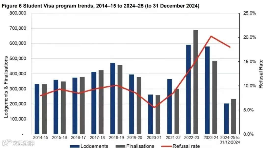 尽管澳洲八大名校的签证批准率依然高达90%以上,但技术类学院(如TAFE)的拒签率却接近50%。实际上,自去年起,减少留学生数量的措施已初见成效。上一财年,获批的学生签证数量为37.6万份,较前一年减少了近20万份。与此同时,毕业后申请485签证以留在澳洲的趋势也在减弱。该签证的申请量较之前大幅下降了48.4%,主要原因在于语言要求的提高。这对于上一年还是大热门的TAFE学签来说,无疑是迎来了当头一棒!