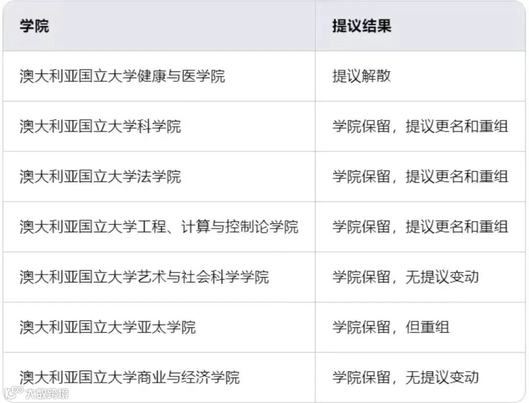 澳大利亚国立大学(ANU)宣布大规模重组学术机构,由7个学院减至6个,保留42个院系及研究所,其中5个院系、2个中心及1个研究所将并入新学院,另有三个学院更名。