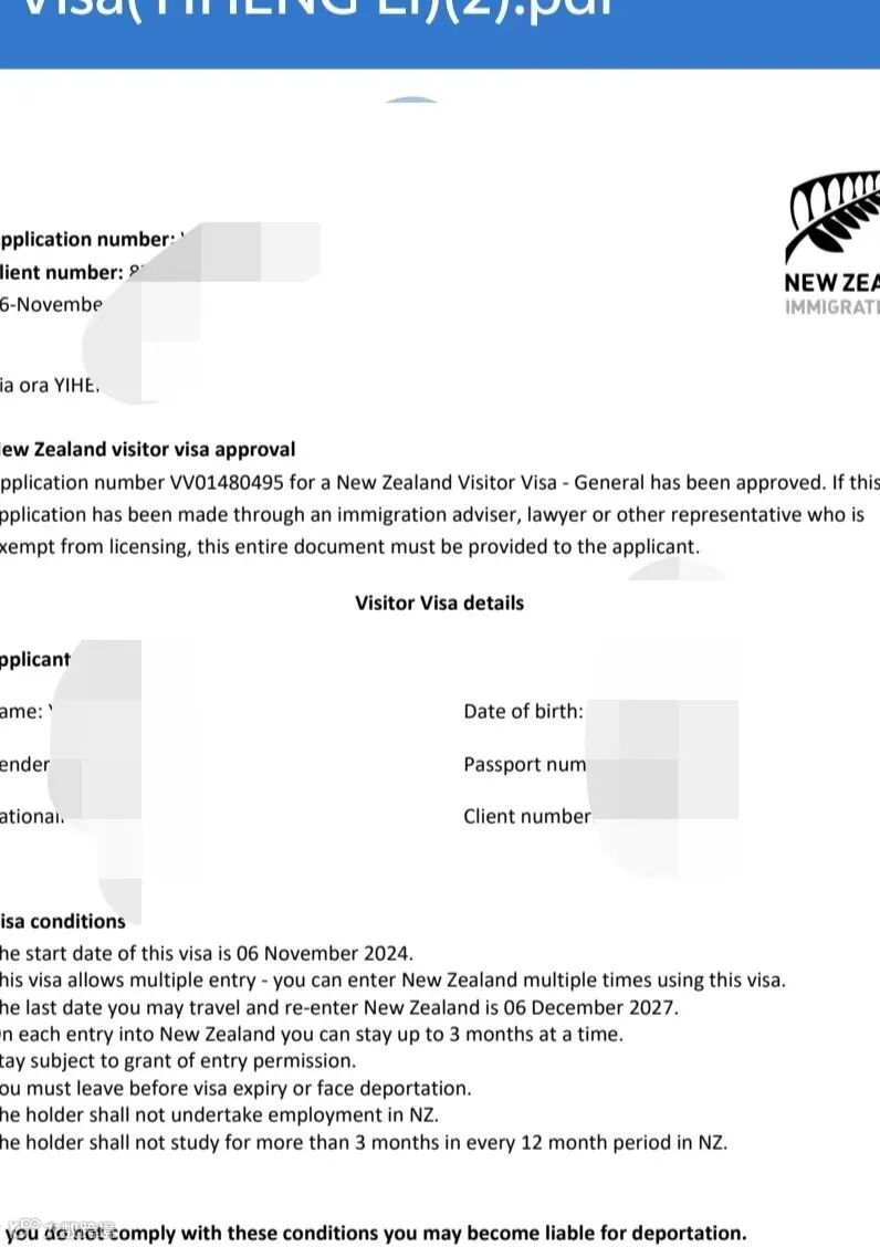 在所有资料准备就绪和确保无误后,我们立刻启动了新西兰五年多次往返签证的办理程序。在我们的精心指导和操作下,l先生在近日顺利获得了新西兰五年多次往返签证,这充分验证了我们专业签证服务的实力和底蕴