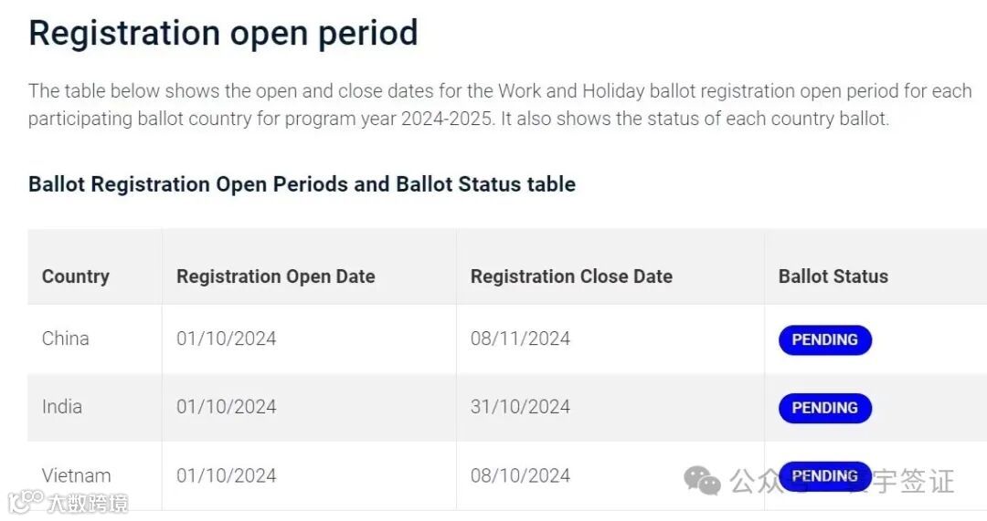 在这两天,传来了一个好消息:根据澳洲移民局官网显示,针对中国、印度、越南申请者的本轮申请注册,将从2024年10月1日开启,截止到2024年11月8日结束!