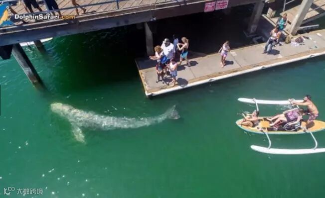 一只神秘幼年灰鲸在南加州外海徘徊不走,沿海城市一个一个「逛」。第四天在极少看见鲸鱼的新港(Newport Harbor),给民众带来惊喜。