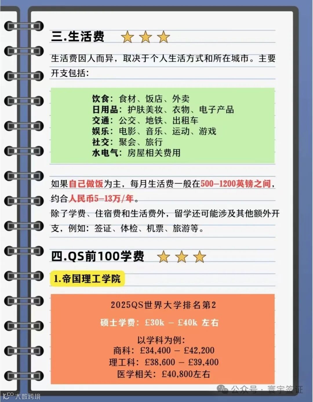 ✔生活费 生活费因人而异,取决于个人生活方式和所在城市。主要开支包括: