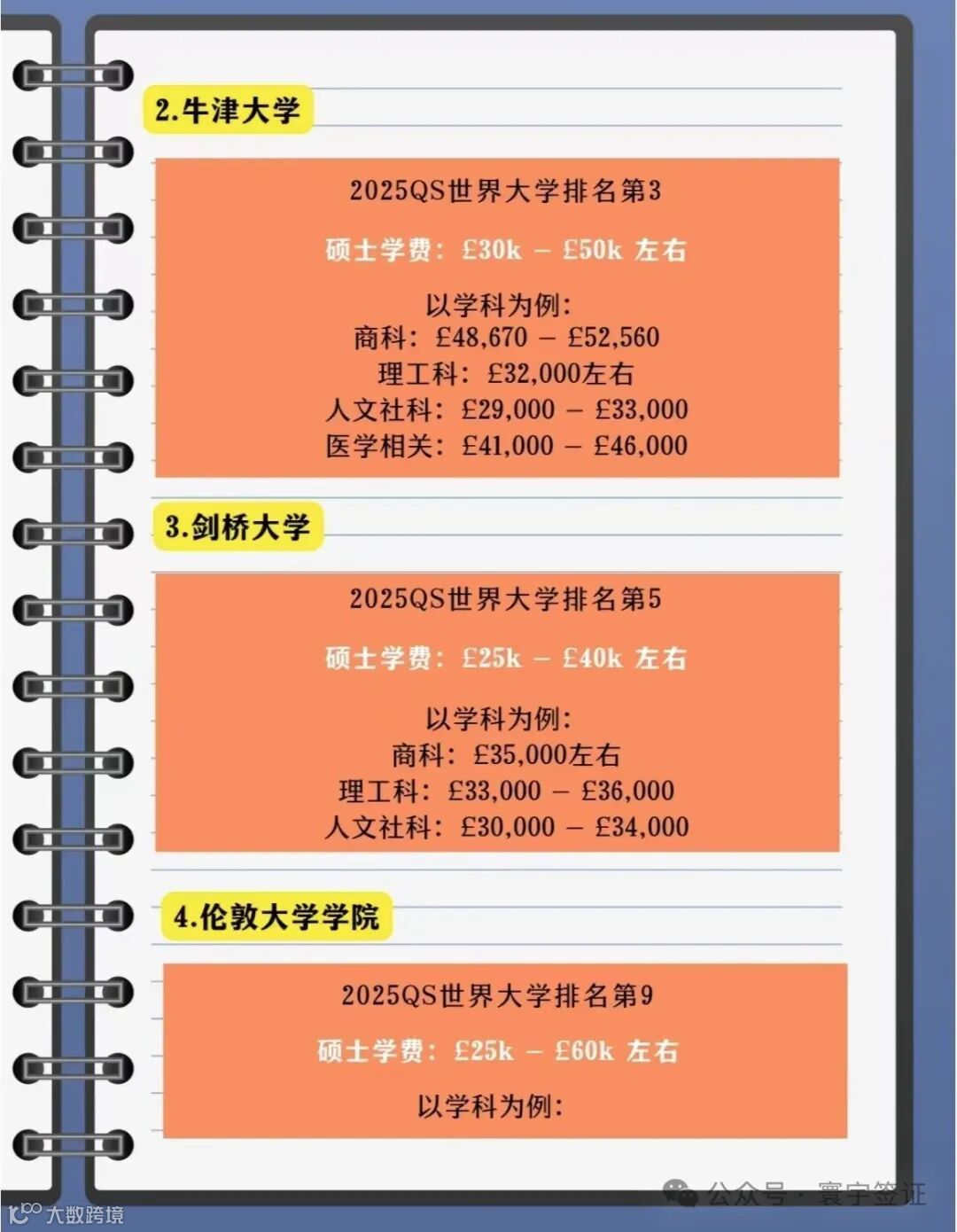 牛津大学:2024-2025学年的学费范围为30-44万人民币/年。生活费约为每月1345-1955英镑,本科学费在33050-48620之间,比去年上涨10%。