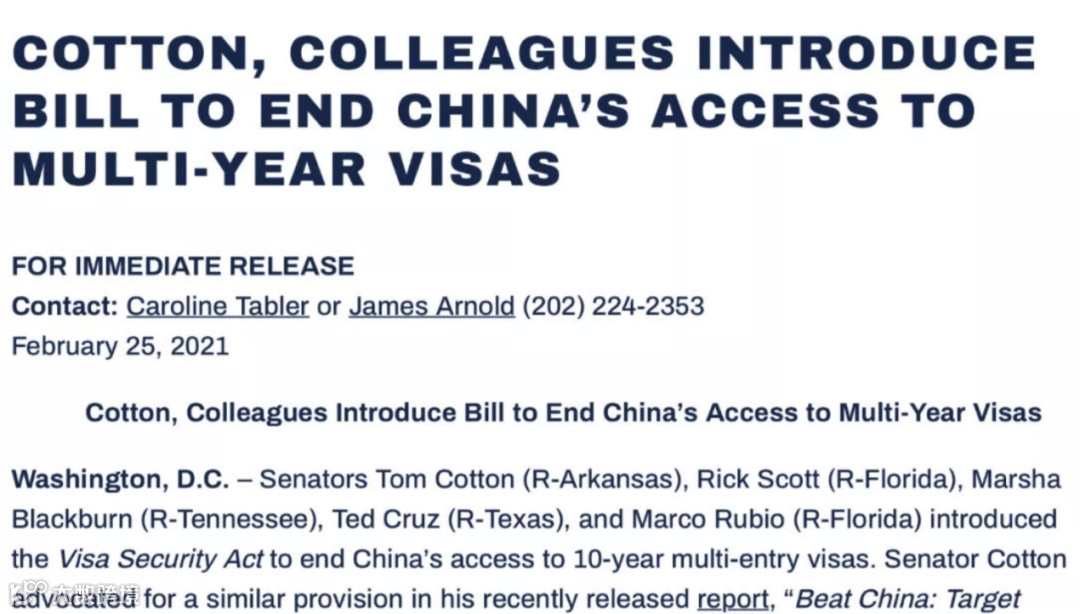 2014年11月12日,美国使领馆开始可以为前往美国从事商务和旅游活动(B-1/B-2)的中国公民颁发有效期最长为10年的多次入境签证,为赴美留学的中国公民颁发有效期最长为5年的多次入境签证。这一政策一直实行至今,惠及了上千万申请人。但是网上时不时就有各种“消息”说要取消美签,特别近些年中美关系每况愈下。声浪最大的一次是21年美国共和党参议员Tom Cotton交了份法案(Visa Security Act),拿这个中美10年签证开刀。他提议取消中美往返10年签证,恢复2014年前的签证状态,允许1年多次往返中美。
