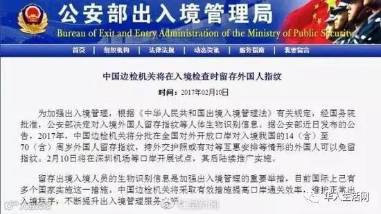 今年又有人发假的新闻,这条假新闻当中,混入了公安部在今年2月发布的《中国边检机关将在入境检查时留存外国人指纹》的通告(下图),真假消息混合,以提高假新闻的可信度。
