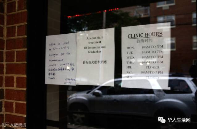 章晓良位于艾姆赫斯特的诊所13日未营业,门口告示写着7月12日到14日停业。