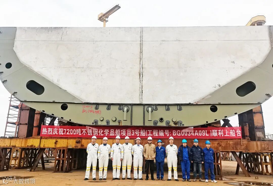 3月25日,由武昌造船承建的7200DWT化学品船3号船完成上船台节点,正式转入船台总组阶段。