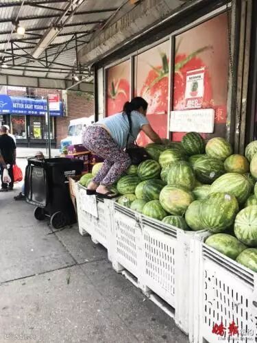 5日下午,法拉盛缅街上的昌发超市外的西瓜摊惊爆 “惊险一幕”: 一名中年华裔妇女穿着拖鞋爬上西瓜摊位,头伸向西瓜摊深处,东挑挑西捡捡,敲敲西瓜外壳,想找到最好的西瓜。她爬在西瓜摊上挑了快30秒,引起周围行人议论纷纷。一些人说 “这个女的怎么那么野蛮” ,但这名妇女好像完全没有听到,直到她挑中一只西瓜才跳下西瓜摊。