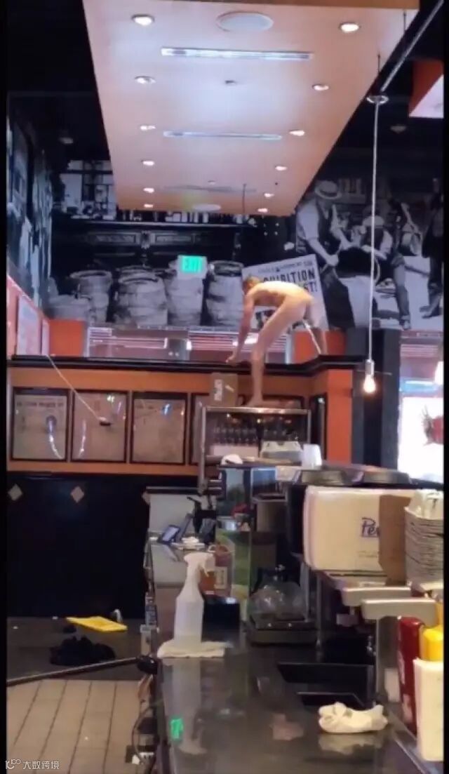 店员Larry提供一段该男子在店中破坏的视频。男子一开始穿着衣服谩骂员工,还跳上柜台,很快就脱下全身衣物,拿着一根长棍在店中奔跑或跳上跳下,最后光着身子走到街上离开。 Larry还表示收银台上的平板电脑也被打碎,造成不小损失。