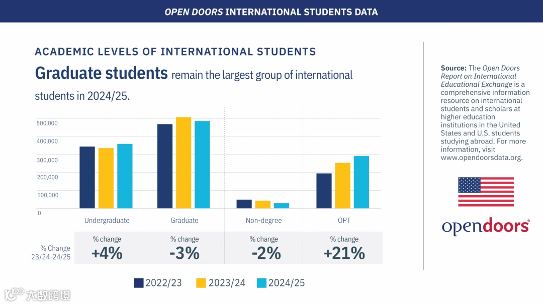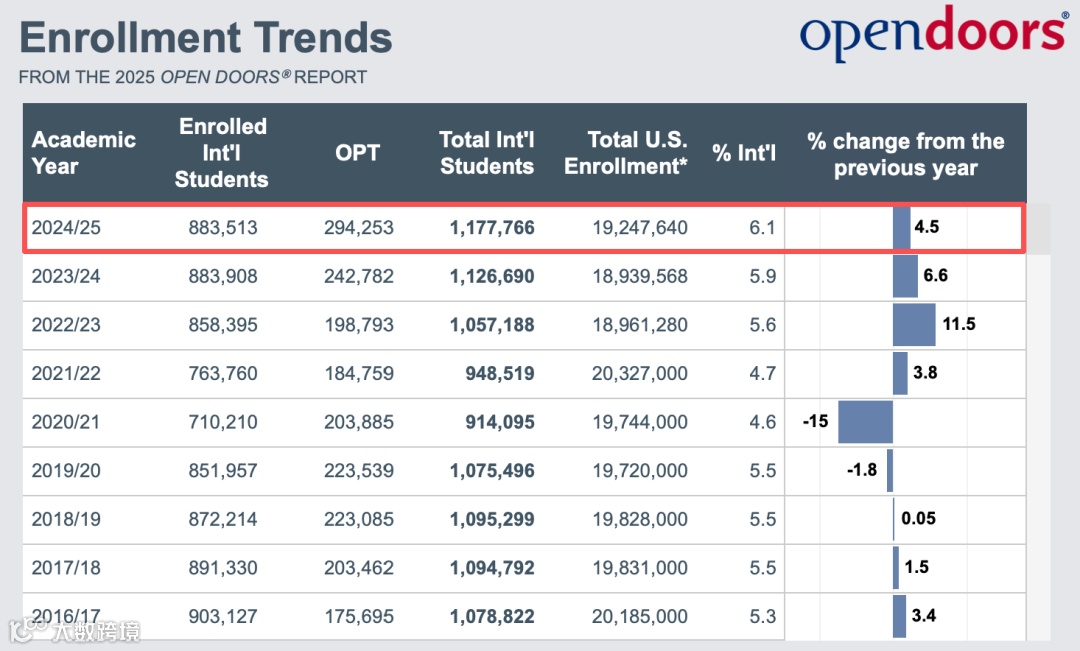 11月,美国发布了2025年度门户报告Open Doors,美国高等教育的国际吸引力热度依旧,赴美留学生总人数再次突破百万!