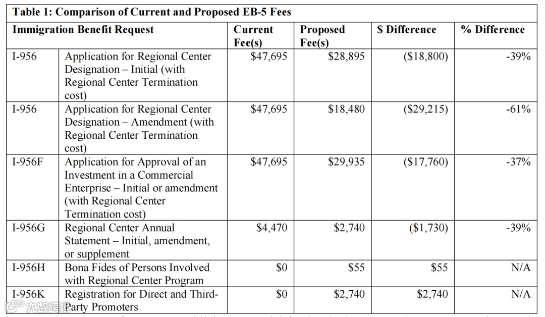 I-956修正(区域中心修改申请):从47,695美元降至18,480美元,降幅超过六成。