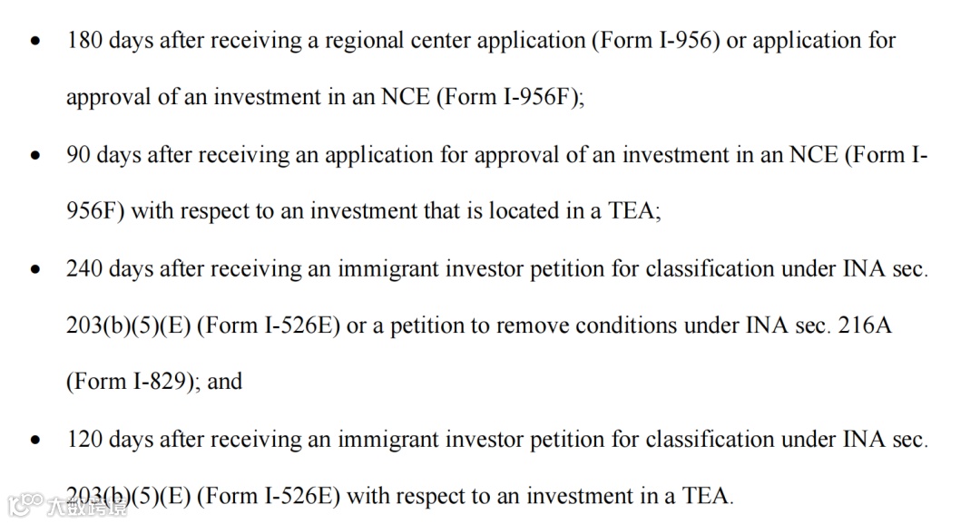 值得注意的是,移民局在文件中提及“审案时限目标”(例如TEA类I-526E目标审理时间为120天、I-829为240天),但这仅属于内部参考标准,并不具备退款或强制约束力。
