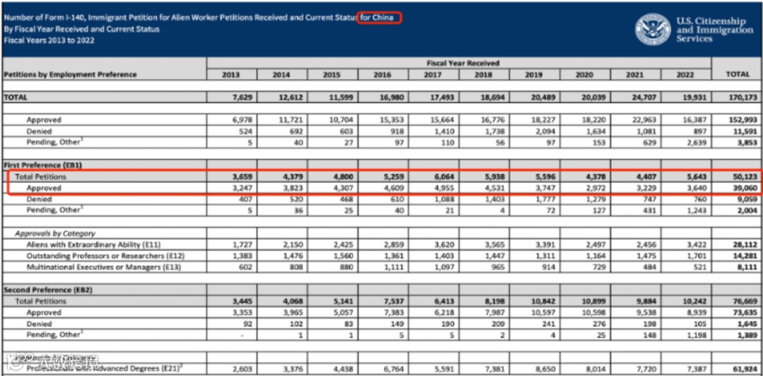 重点看两个数据,申请总数(total petitions)和获批数量(approved)。最近10年,申请总数接近25万,21万人获批,获批率高达83%。