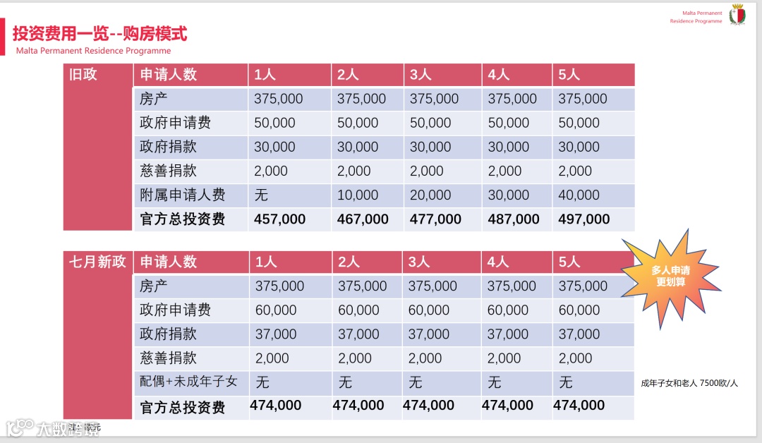 ✅ 多孩家庭友好:成年附属申请人政府费用由1w欧/人降至7500欧/人(未成年子女,配偶,成年残疾子女免除此费用)