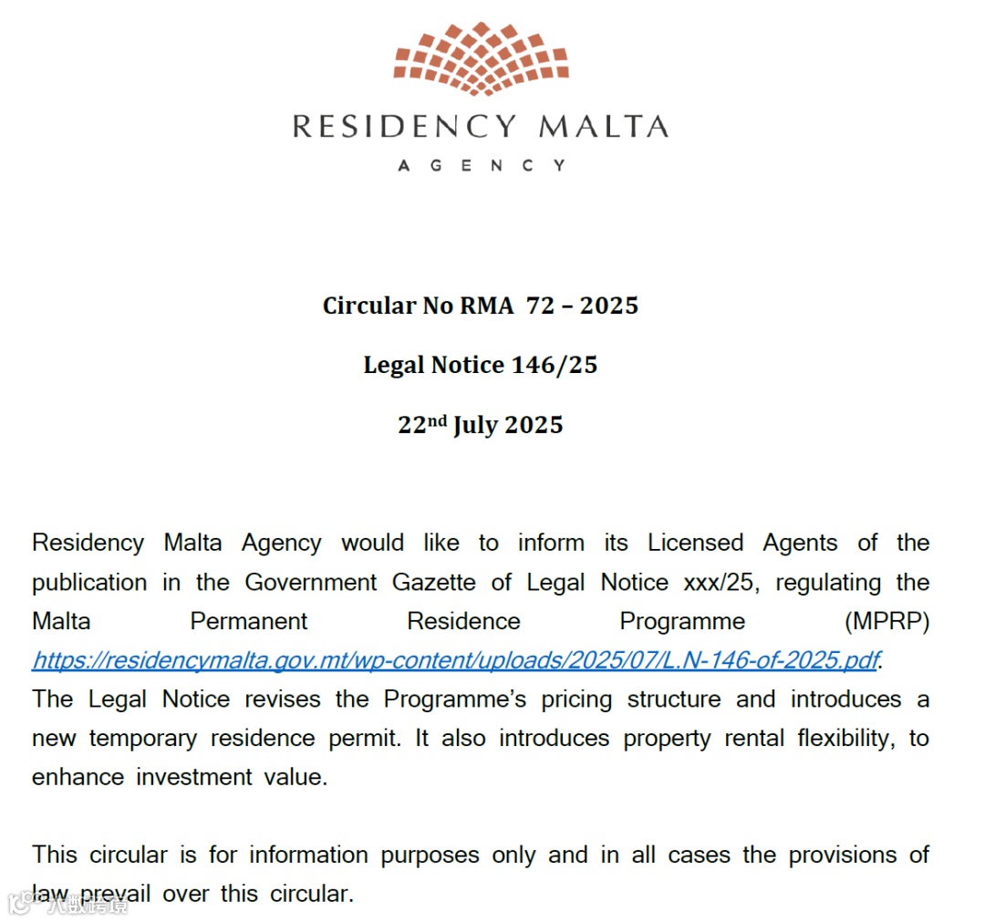 2025年7月22日,马耳他政府正式颁布第146号法律通知(Legal Notice 146/25),对现行的马耳他永久居留计划(MPRP)进行了多项关键性修订,直接点燃了移民圈!