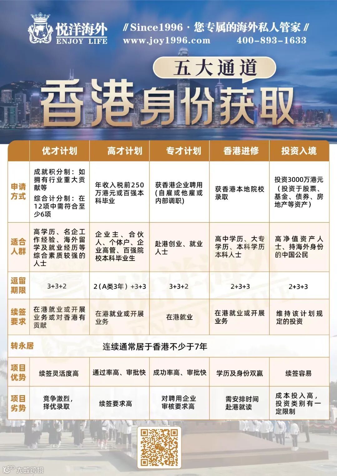 目前办理香港身份的方式较多,有香港优才、高才通、留学进修计划和投资移民等,大家可以对照选择适合自己的方式。