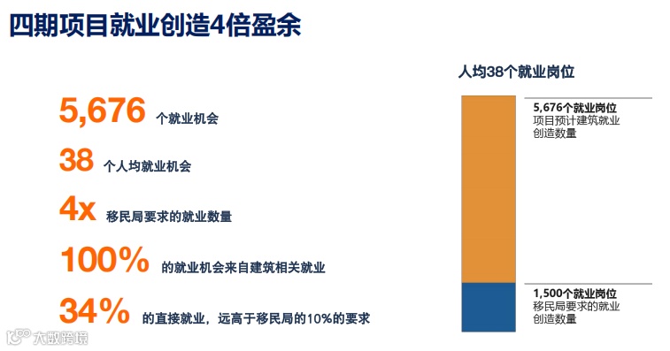 项目预计将共创造5,676个就业,为每位投资人创造38个就业岗位,远超美国移民局批复永久绿卡所需的10个就业岗位的要求。