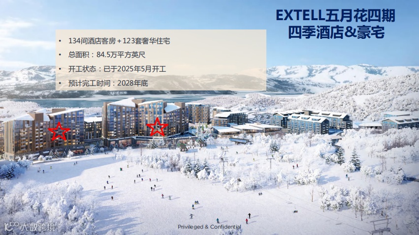 EXTELL五月花三期滑雪服务中心项目的1-956F已经获批,已开工半年,预计2026年11月完工。