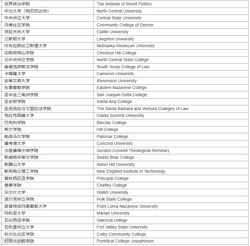 美国:63所!堪称重灾区,如世界政治学院、中北大学、中央州立大学等。