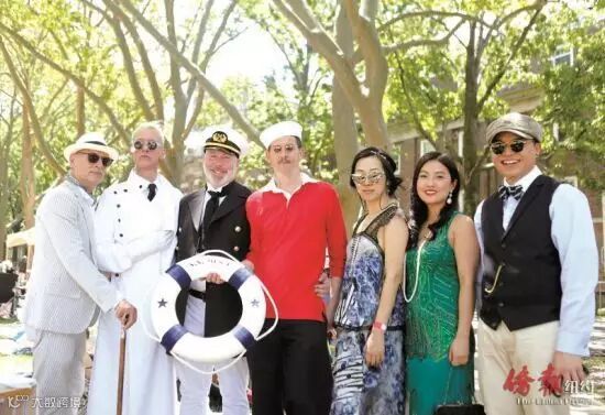 在穿梭时光的总督岛上,不仅有来自美国的复古情怀,同时众多参与的华人民众也将中式复古的魅力以精致的服饰与特色的配饰尽情展现。当日活动上,来自上海的刘秀英与女儿包倩文首次参与并以旗袍亮相。刘秀英表示,来自上海的她特地来纽约看看正在大学就读的女儿。第一次参与派对的刘秀英开心地表示,女儿以旗袍参与让她倍感骄傲,中国文化与上海情调以服饰的方式展现让她十分开心。
