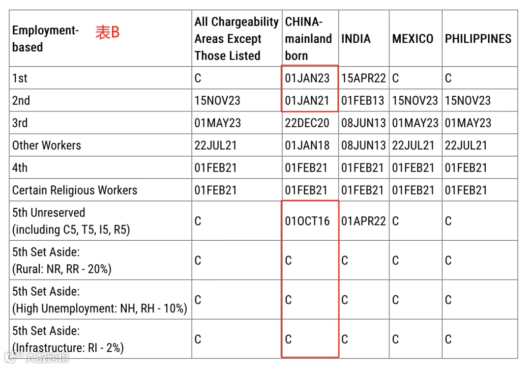 2025年7月美国最新绿卡排期发布!排期表A中EB-1/2/3全部前进,EB-5预留签证类别依然无排期;排期表B中排期均无变化。