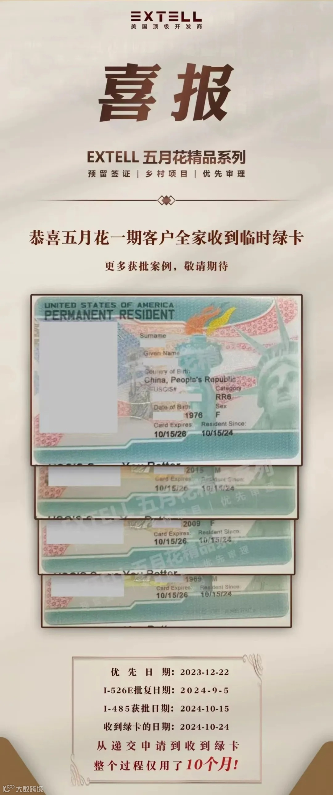 而且一期项目I-956F已于2024.1.26获批,选择一期客户的I-526E申请已陆续获批,并已有多个客户陆续获得临时绿卡,成功模式可借鉴!
