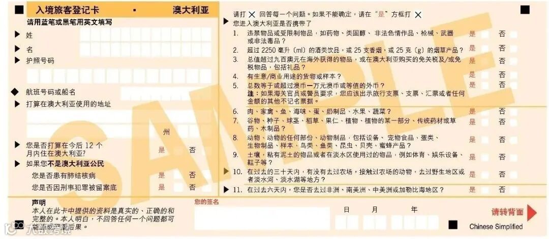 澳洲海关入境程序