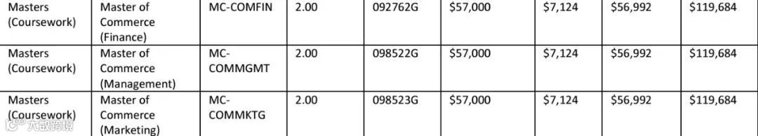 研究生方面,Master of Business (Accountancy)的新学费为$37440。